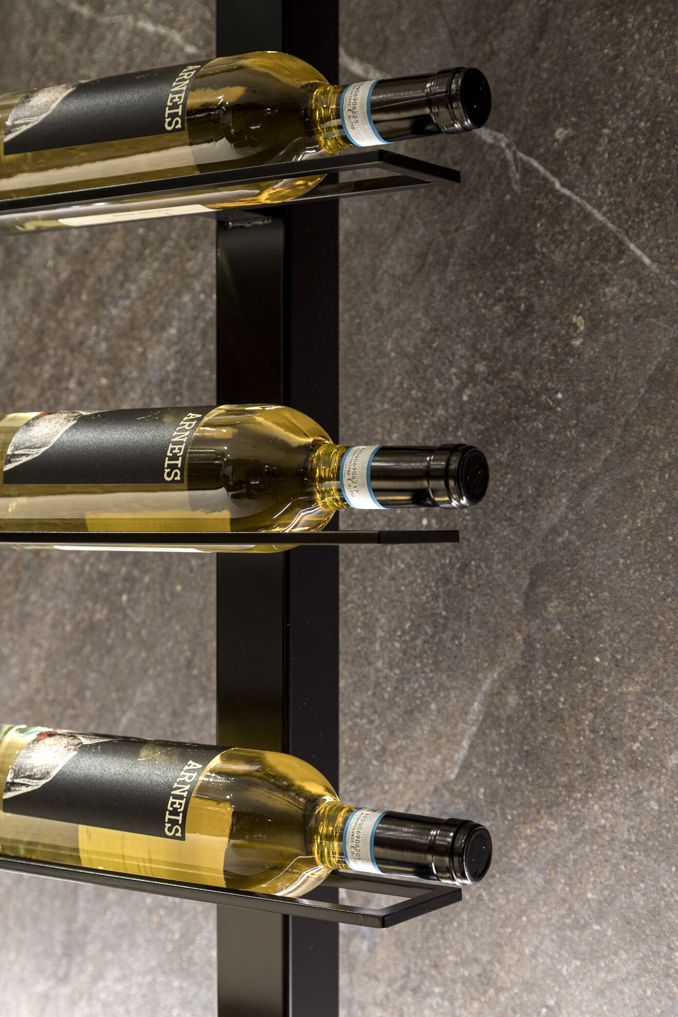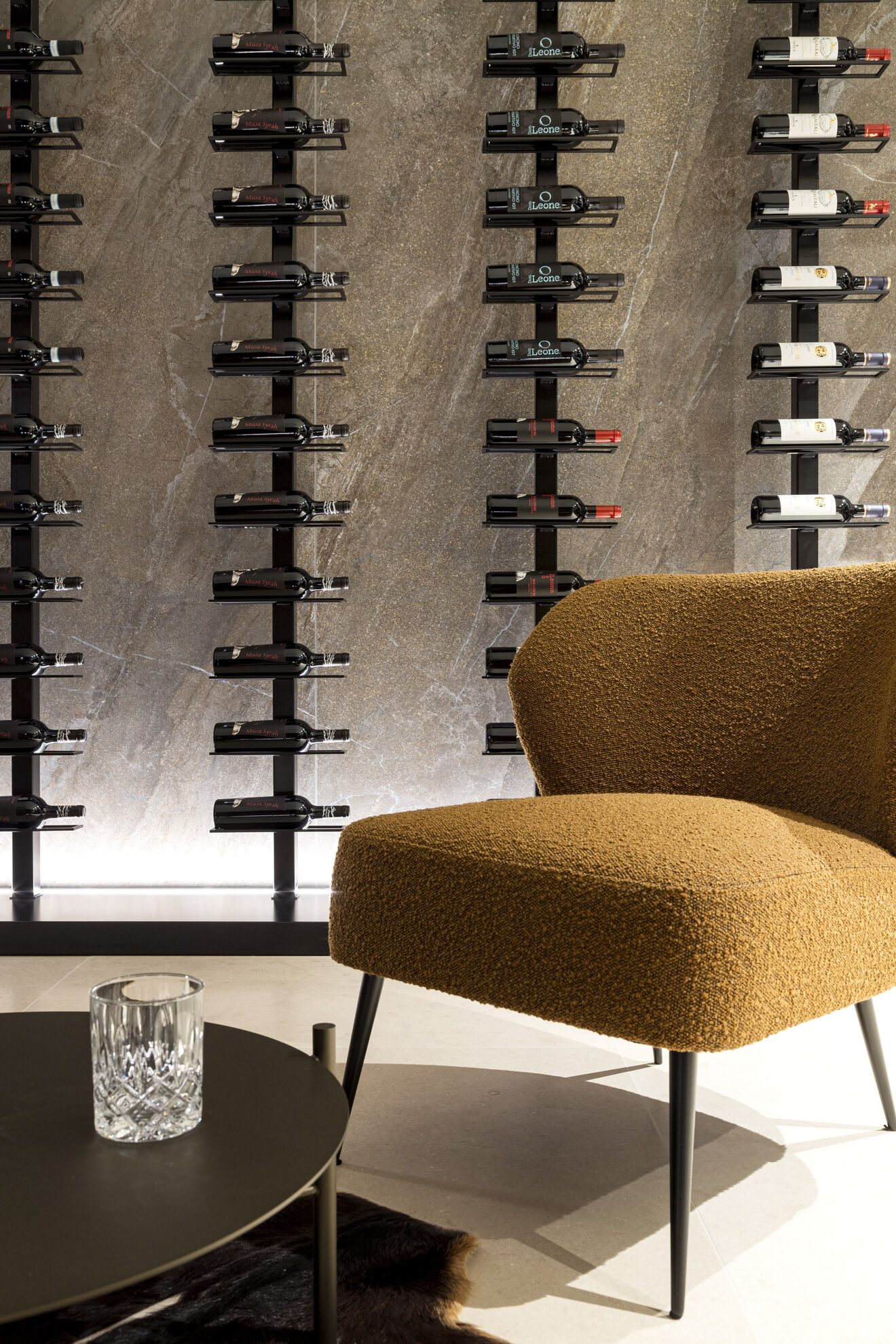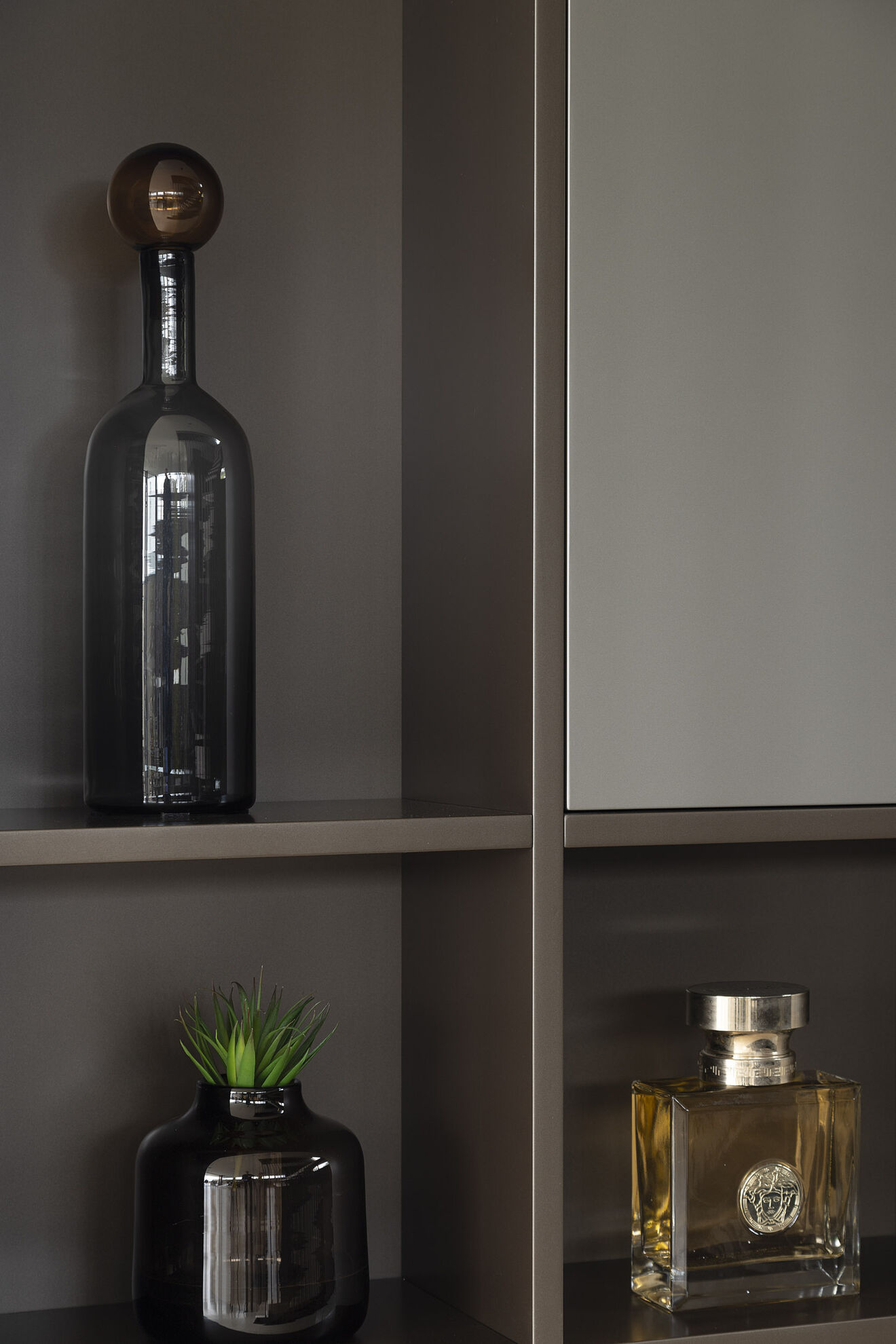 Characterized by a contemporary style, Casa LC offers elegant and innovative design solutions, with metal-effect lacquered finishes that define the entire living area. The impressive kitchen block, with integrated island and snack area, is designed to combine aesthetics and functionality. The tall units in the back, which embed the lift, are embellished by the inclusion of wine cellars. The bookcase composed by open and blind spaces with finishes in different shades, giving dynamism to the space.