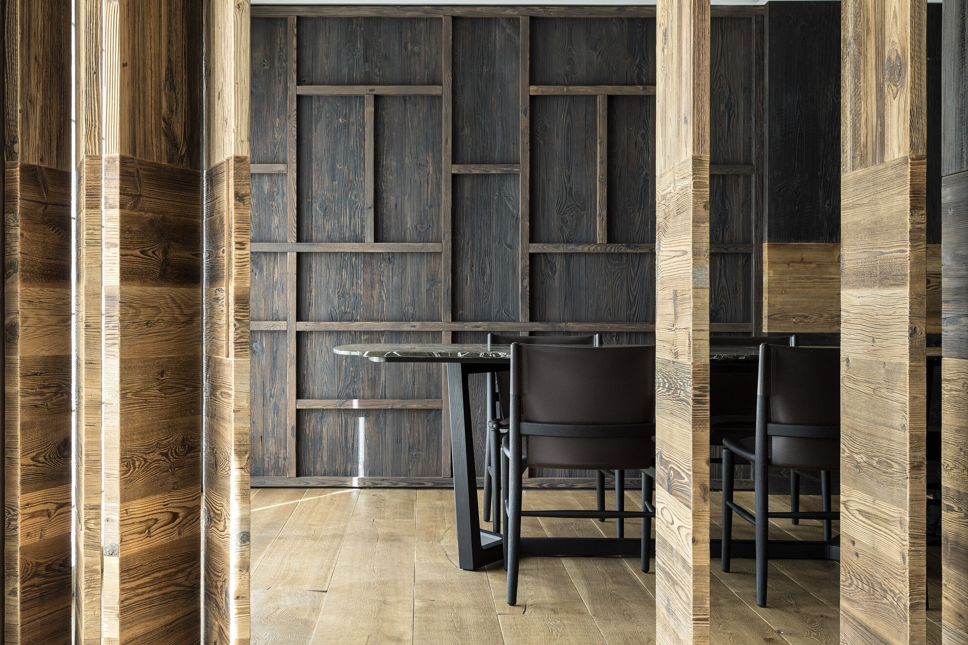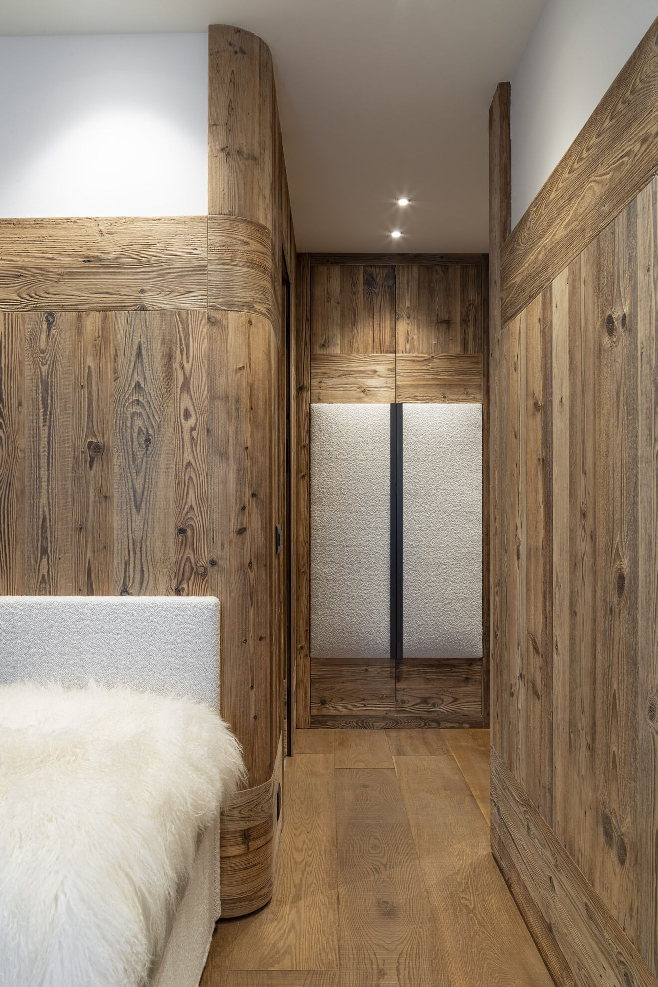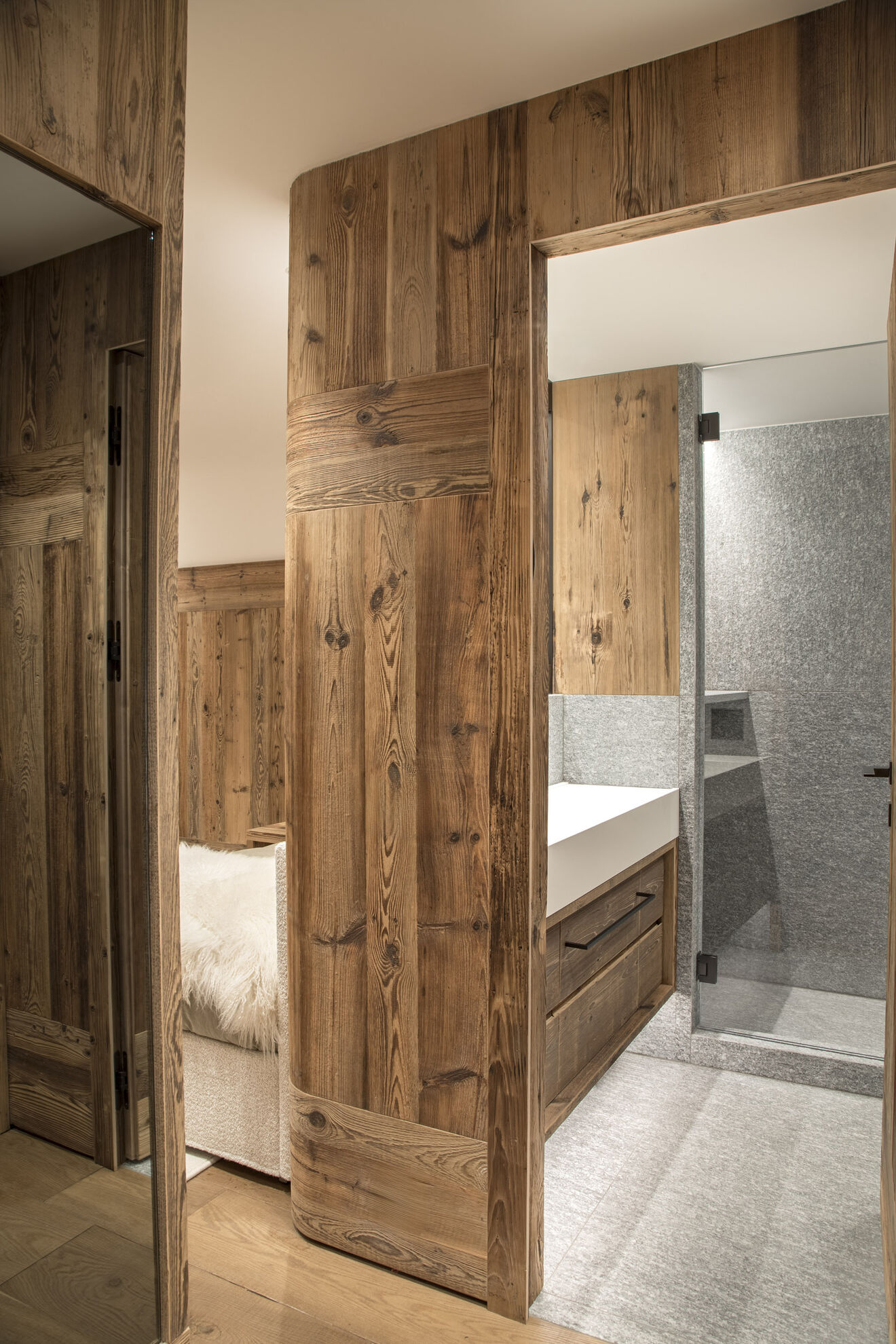 Realizzato in collaborazione con lo Studio di Architettura Fanetti and Partners, questo progetto esalta il connubio tra legno vecchio e legno bruciato, creando un raffinato gioco di venature e contrasti. L’uso di elementi metallici, insieme a dettagli come bordature e cornici, dà vita a uno spazio dal fascino autentico, perfettamente inserito nel contesto engadinese. Ogni ambiente riflette l’attenzione per il design d’interni, con soluzioni su misura che valorizzano la materia prima e l’estetica montana.