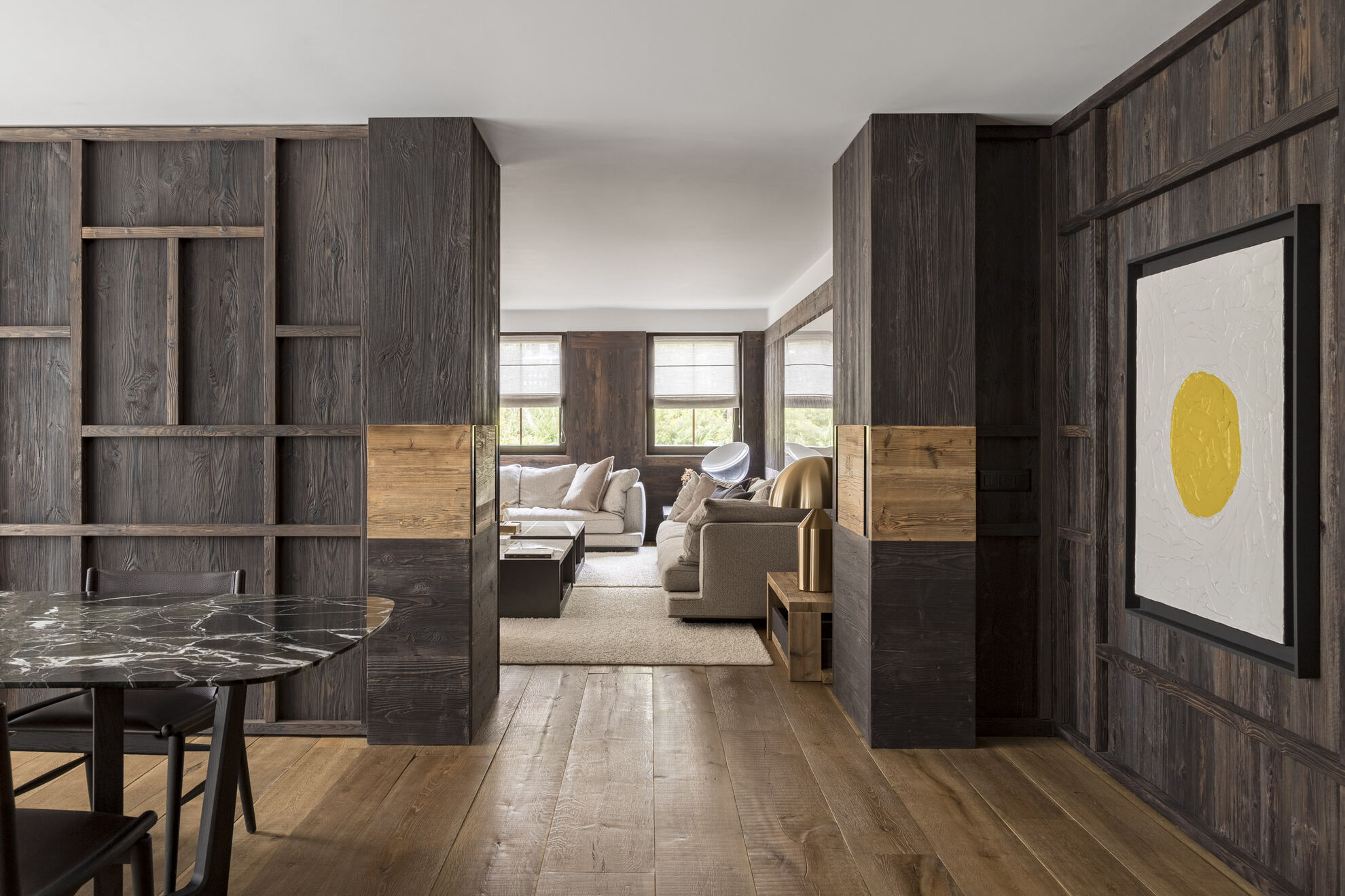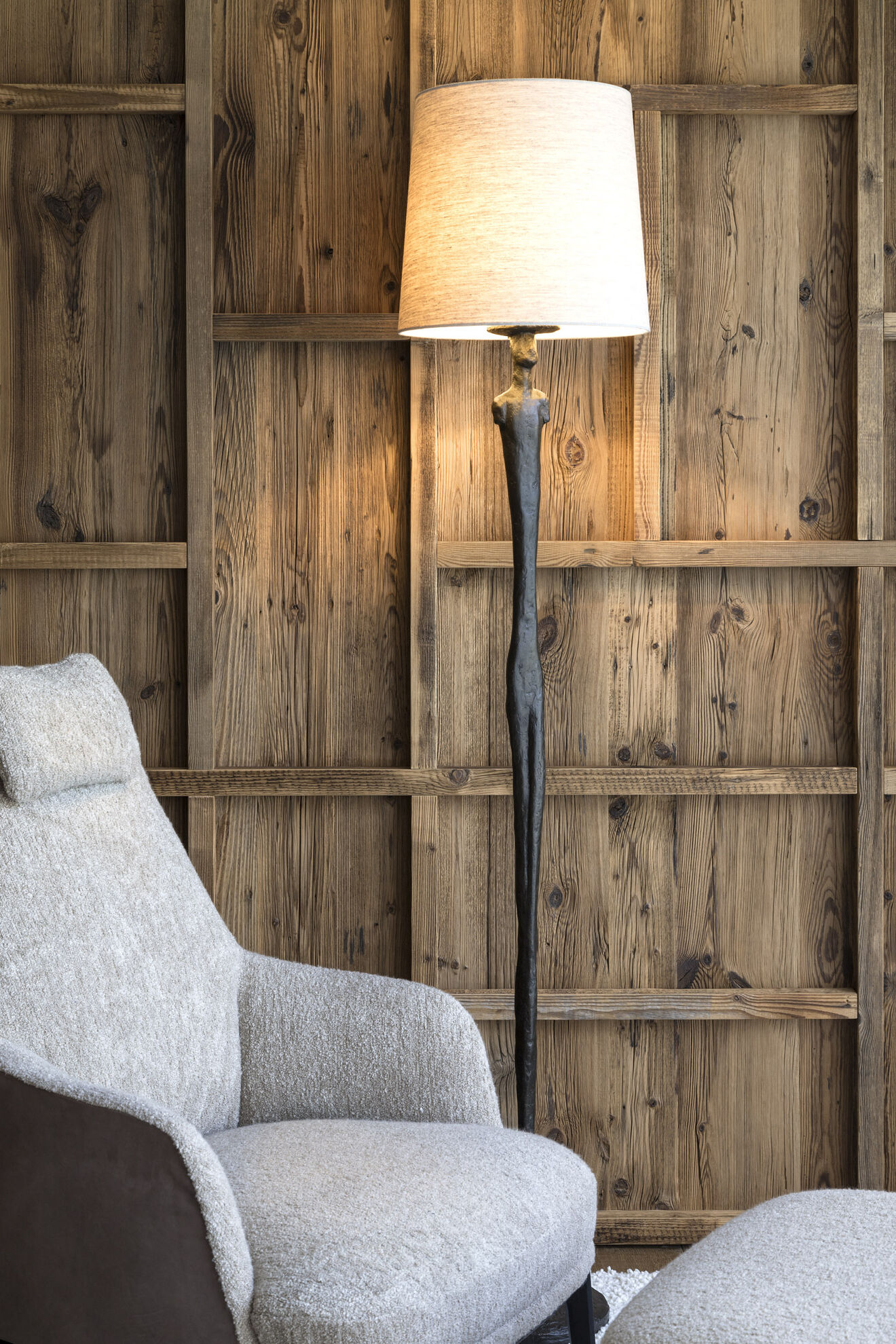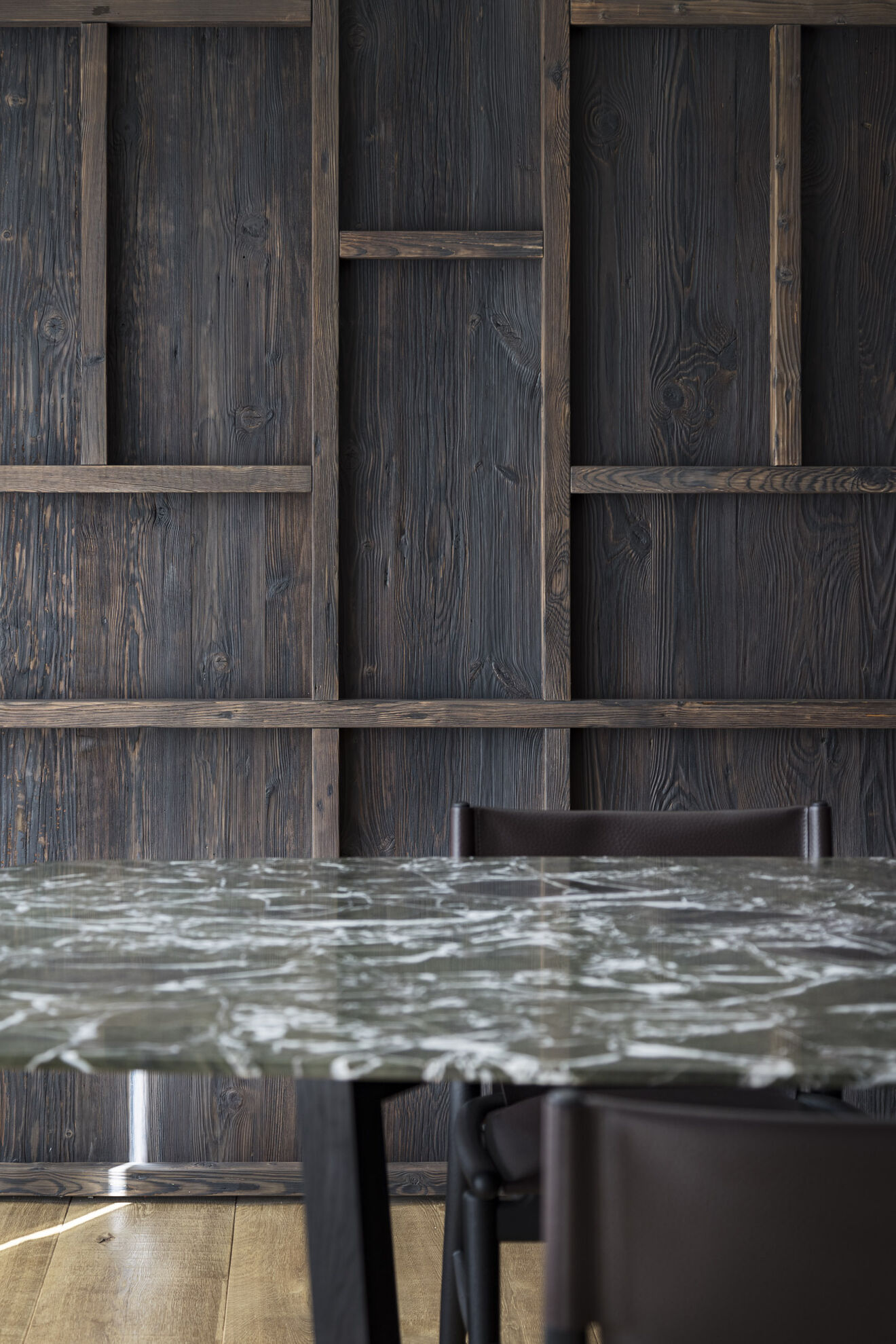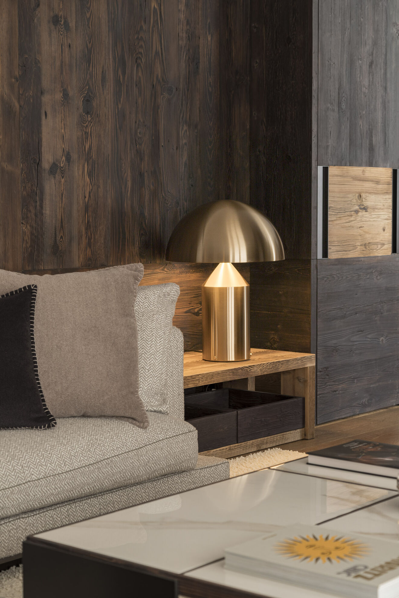 Realizzato in collaborazione con lo Studio di Architettura Fanetti and Partners, questo progetto esalta il connubio tra legno vecchio e legno bruciato, creando un raffinato gioco di venature e contrasti. L’uso di elementi metallici, insieme a dettagli come bordature e cornici, dà vita a uno spazio dal fascino autentico, perfettamente inserito nel contesto engadinese. Ogni ambiente riflette l’attenzione per il design d’interni, con soluzioni su misura che valorizzano la materia prima e l’estetica montana.